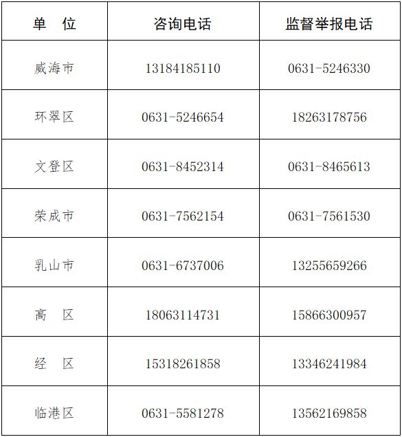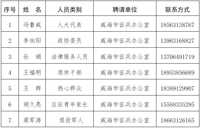威海市征兵業(yè)務(wù)咨詢(xún)、監(jiān)督舉報(bào)電話