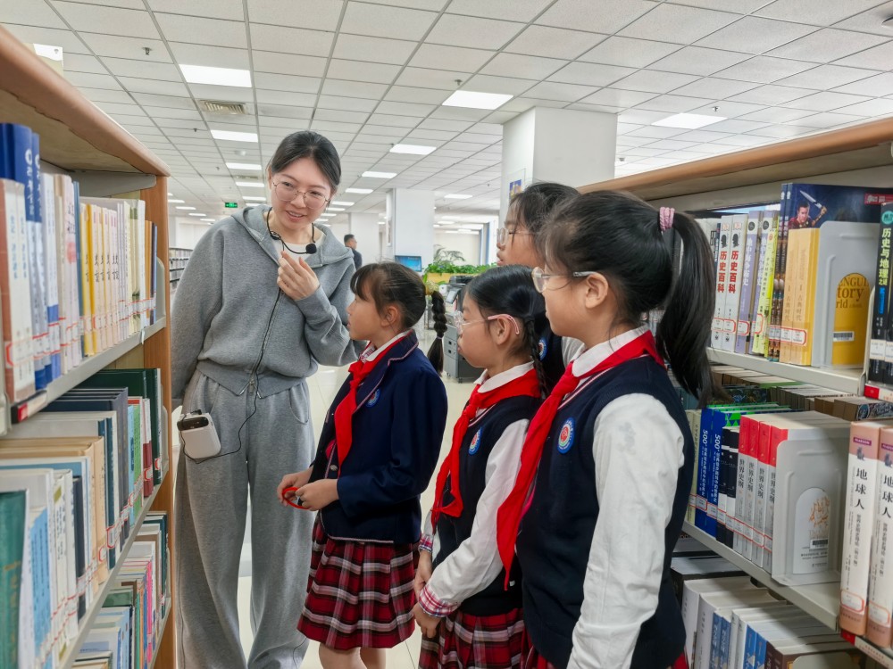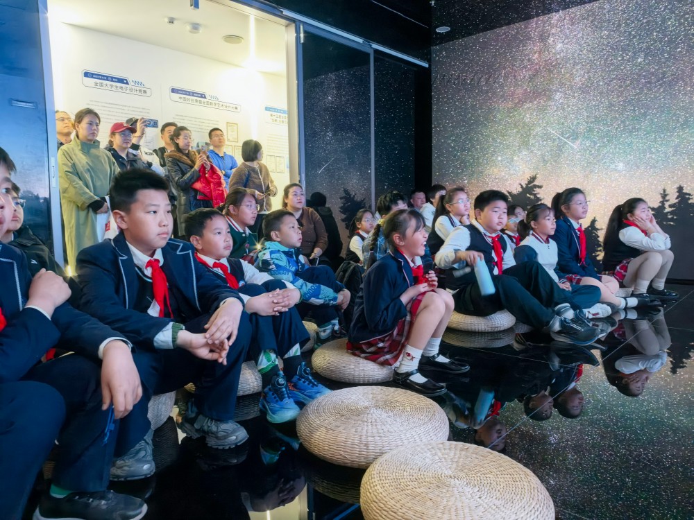 隨后,大家走進(jìn)山東大學(xué)(威海)圖書(shū)館。這座現(xiàn)代化圖書(shū)館以豐富的館藏和先進(jìn)的管理模式令學(xué)生和家長(zhǎng)贊嘆不已。據(jù)介紹,圖書(shū)館館藏紙質(zhì)文獻(xiàn)超過(guò)800萬(wàn)冊(cè),同時(shí)配備了現(xiàn)代化的管理系統(tǒng)和多媒體操作平臺(tái)。最受孩子們歡迎的是圖書(shū)館內(nèi)的360度全景科普屏——輕輕點(diǎn)擊,宇宙星辰、深海世界、遠(yuǎn)古恐龍、浩瀚星空便環(huán)繞身邊,帶來(lái)沉浸式的閱讀與學(xué)習(xí)體驗(yàn)。孩子們紛紛感嘆:“原來(lái)圖書(shū)館不只是看書(shū)的地方,還可以這么酷!”在這里,書(shū)香文化與現(xiàn)代科技完美融合,讓孩子們真切感受到閱讀的魅力和知識(shí)的力量。